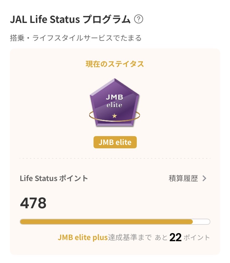254ポイント。(2024年8月時点)*JMB elite特典獲得