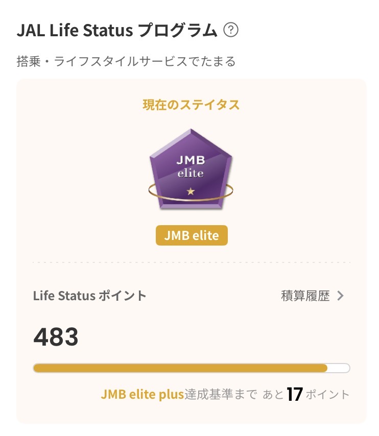 254ポイント。(2024年8月時点)*JMB elite特典獲得